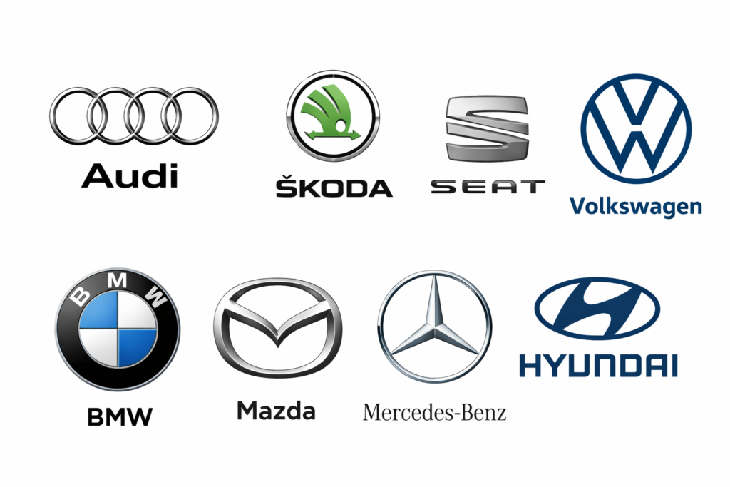 Hos Audi, Skoda, Seat Volkswagen, BMW, Mazda, Mercedes, Hyundai, med flera